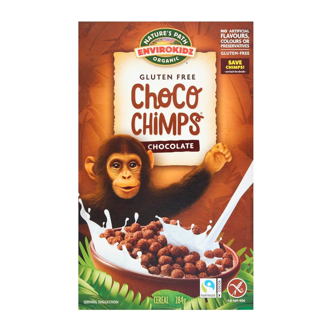 دقيق ذرة كامل الحبة*، دقيق ذرة*، سكر قصب*، مسحوق كاكاو من التجارة العادلة* (معالج قلويًا)، دبس السكر*، نكهة شوكولاتة*، نشا التابيوكا*، ملح البحر. *عضوي. مُنتَج في منشأة تستخدم الفول السوداني والمكسرات والصويا.