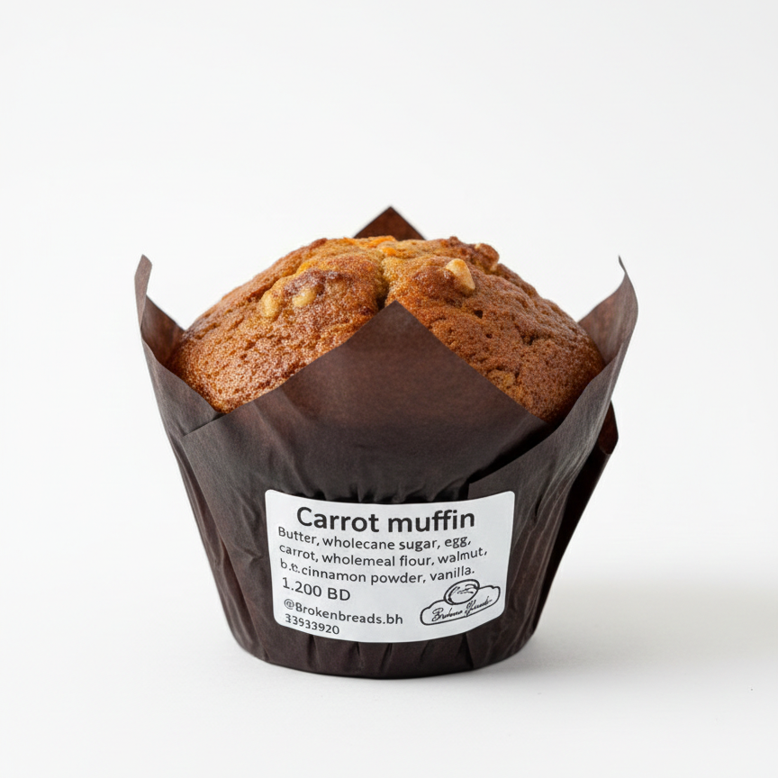 butter, wholecane sugar, egg, carrot, wholemeal flour, walnut, baking powder, cinnamon powder, vanilla.