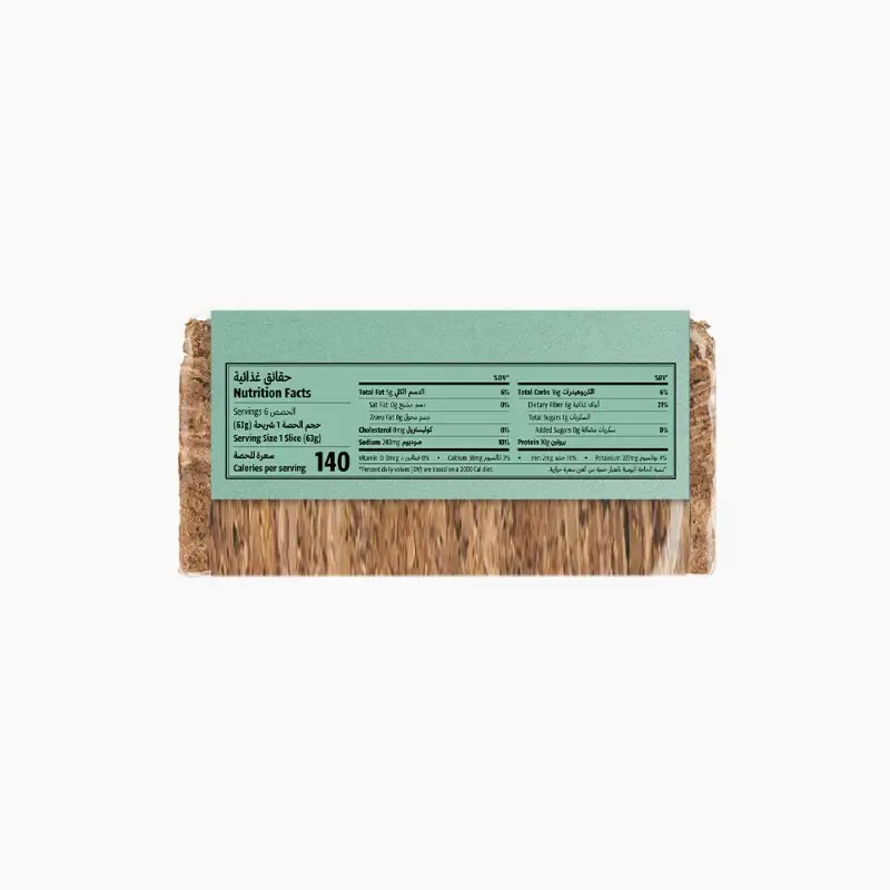 Ingredients: Natural sourdough kibbled whole rye* 26%, water, wheat protein* 11%, lupin flour*, wheat germ*, ground sunflower seeds*, flax seeds*, kibbled whole rye*, apple fiber*, sea salt, yeast*. *Certified organic.